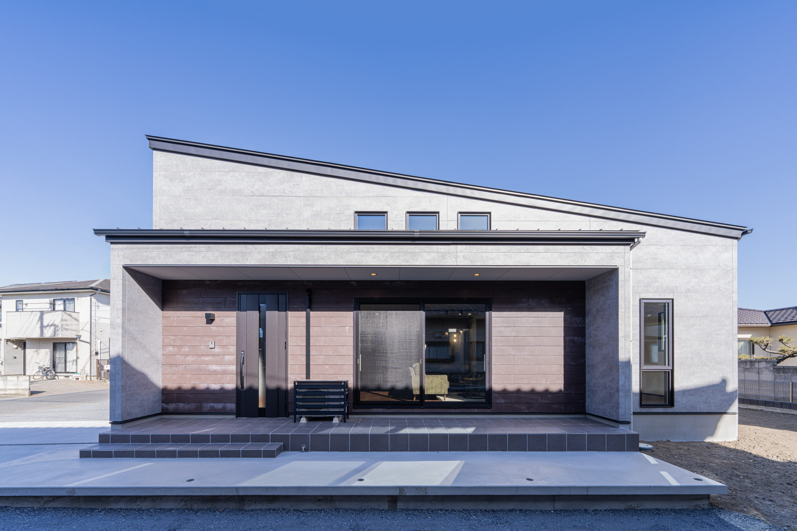 片流れ屋根と深い軒が映える、伊勢崎市のモダン平屋住宅