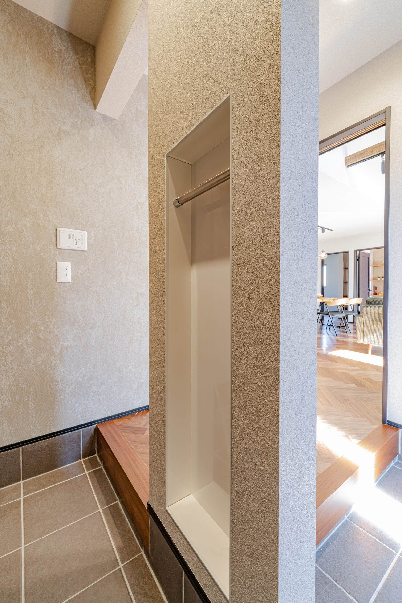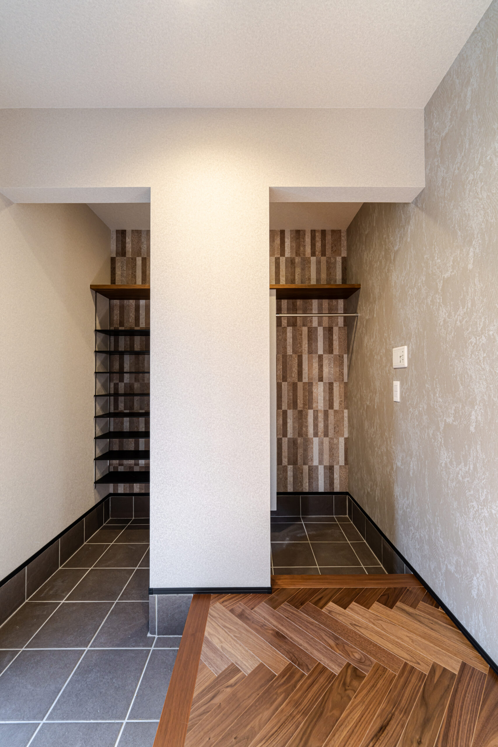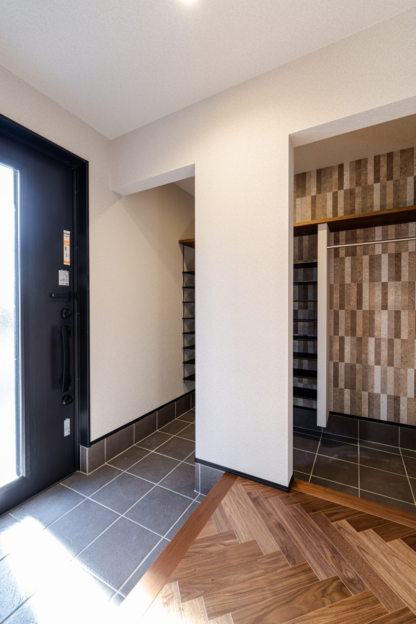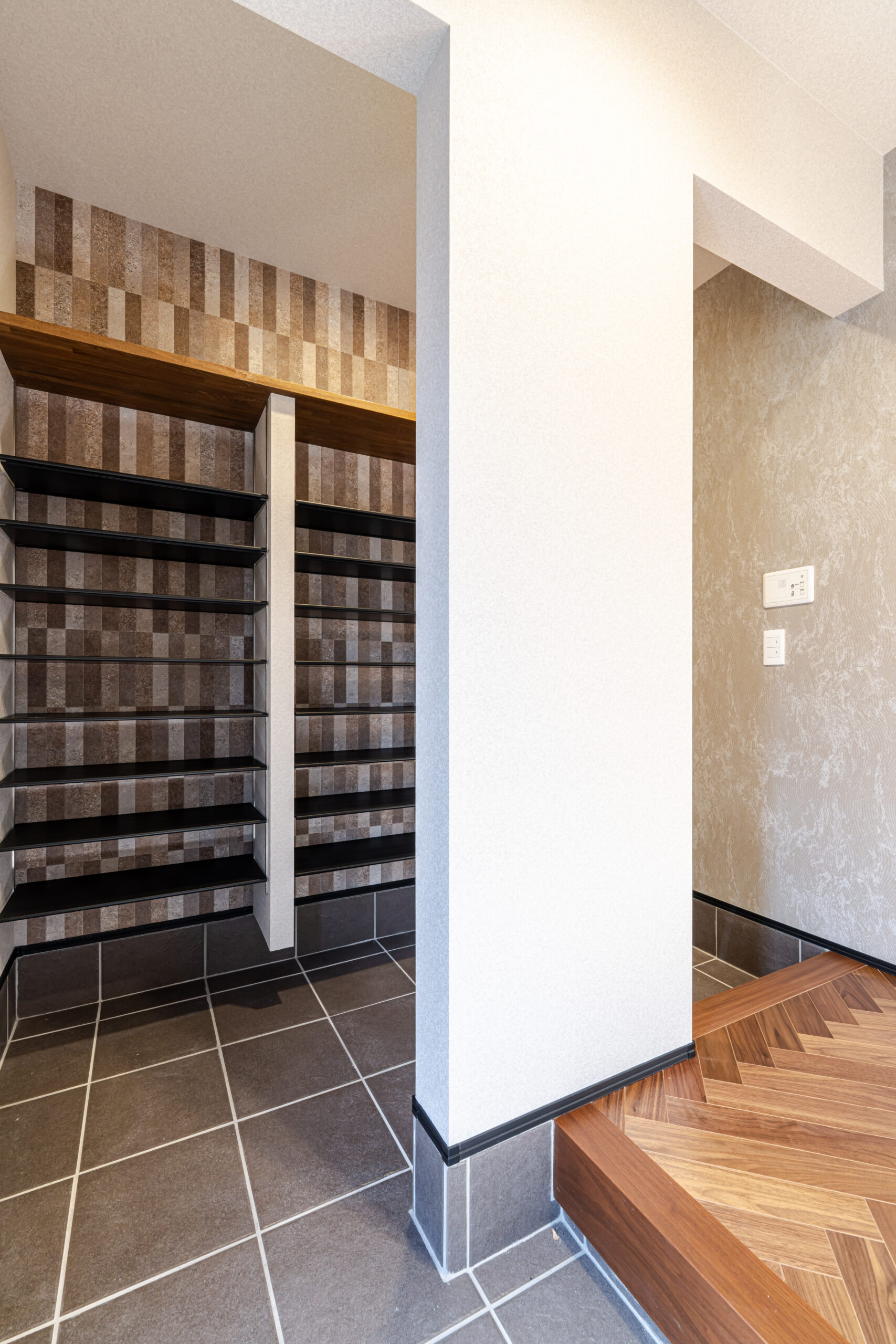 玄関まわりにはシューズクロークを設け、暮らしの入口から整えやすい動線を確保。