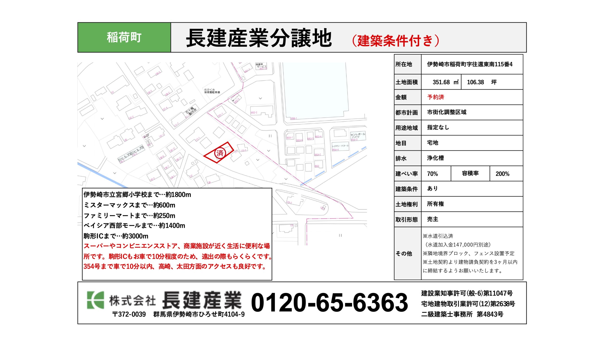 取引形態:売主 建築条件あり ※土地契約より建物請負契約を3ヶ月以内に締結するようお願いいたします。 |
